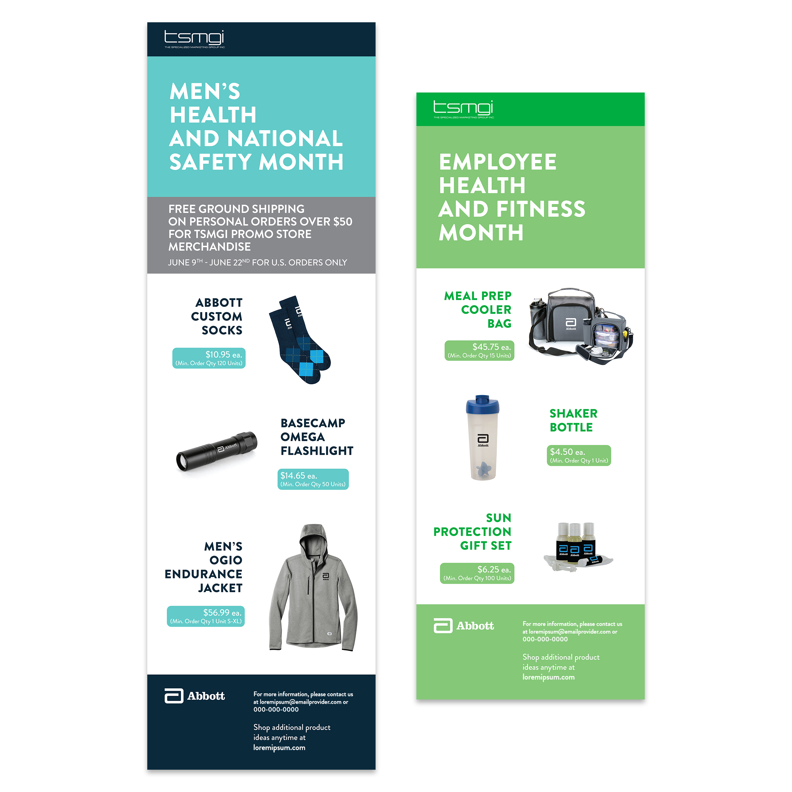 While at TSMGI, I had the opportunity to support Abbott with a variety of print and digital design. I designed and produced custom web banners, print collateral, and other marketing materials, ensuring all assets aligned with Abbott’s established brand standards.
