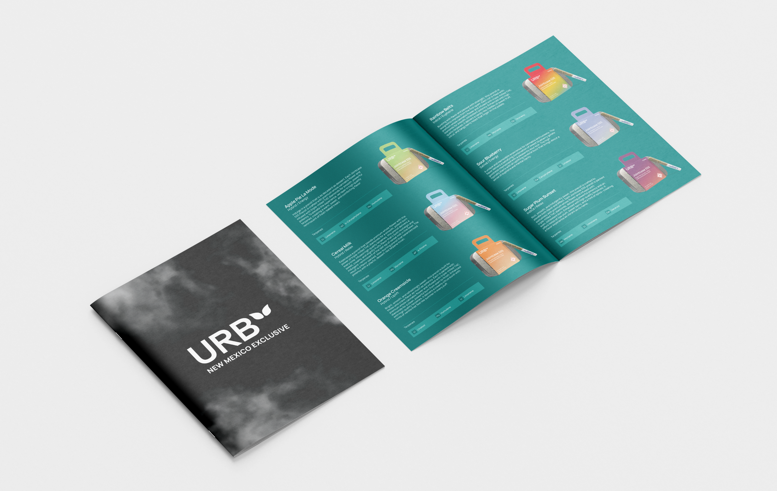 Supporting Urb’s New Mexico product line, I developed a cohesive suite of marketing and retail assets, including a product catalog, in-store TV graphics promoting current offerings, and region-specific posters and packaging. Packaging was thoughtfully tailored to the market, incorporating the local area code as a distinctive product identifier.